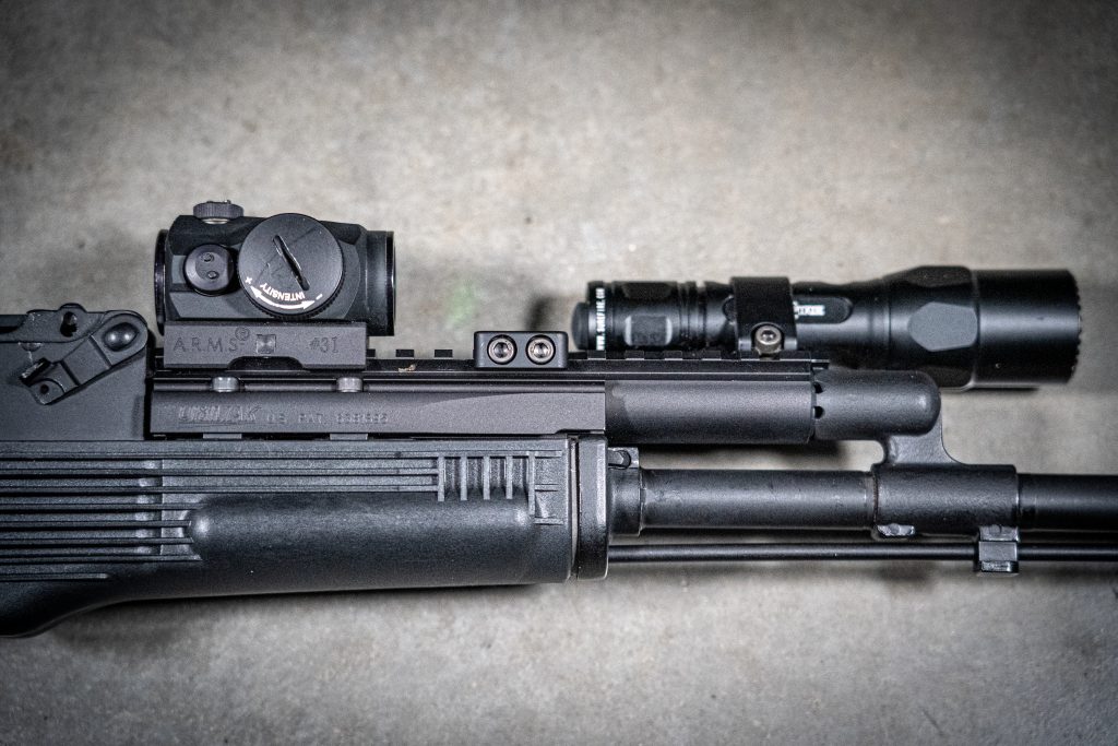 Back then I just ran an Ultimak gas tube and ponied up for an Aimpoint, not that I had many options for quality red dots. Nowadays, Holosun, Vortex and Primary Arms all make quality budget dots that can withstand the heat of a railed gas tube and the harsh recoil of the AK action. RS Regulate is the option for a side rail mount, with optic-specific patterns for optimal placement. They even make an LPVO possible on an AK. Midwest Industries has also stepped up their game with optic-specific side mounts.
