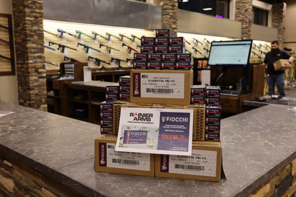 We’ve bought ammo in bulk and are passing on the savings to you. We have Fiocchi Pistol Shooting Dynamics 9mm Luger – 115GR – 1200 FPS ammo on sale for $8.75 for a box of 50 rounds. You won’t find a better price online and in-stock, and certainly won’t find it locally unless you come to Rainier Arms Firearms Academy. Load up on high quality, brass cased, factory ammo. Buy a box or a few cases, available only while supplies last.